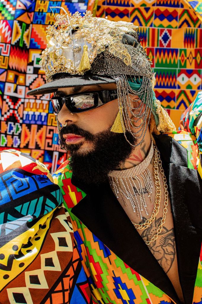 Já Lucas Pizane ostentou uma alfaiataria inusitada, com modelagem oversized e bloco de cores fazendo referência ao Olodum, imprimindo muita sofisticação, personalidade e elegância no estilo. Todos os quatro looks – de Junior, Céu, Jonathan e Lucas – acompanharam o tema deste ano do baile, “Voguelândia: O Fantástico Mundo da Moda”.