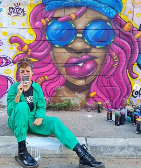 Artista LGBTQIAPN+ e educadora, utiliza o graffiti como forma de expressão desde 2015, destacando-se no calligraffiti. Seus trabalhos combinam formas abstratas e cores vibrantes, desconstruindo letras e palavras. Participou de festivais em diversos estados do Brasil e também em países como Chile, Peru, Colômbia e Argentina.