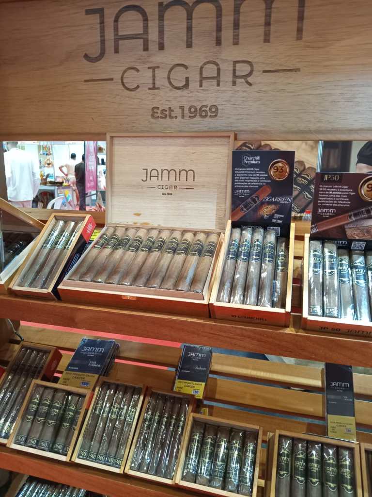 A JAMM Cigar levou seus premiados produtos off Cuba para o pavilhão do Centro de Convenções, num espaço onde foi projetado um minidocumentário que contava a história da marca, além de profissionais que mostravam ao vivo a refinada técnica de enrolar charutos.