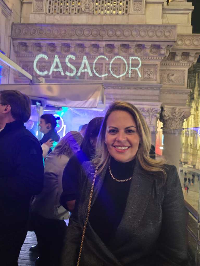 Além da programação do Salone, Carla participou, no dia 9 de abril, de um dos eventos mais marcantes da semana: um encontro promovido pela CASACOR, realizado na icônica Piazza del Duomo, no coração de Milão. A noite celebrou com elegância o talento da arquitetura brasileira, reunindo profissionais e convidados num evento que ressaltou a força e a sofisticação do design nacional em solo europeu.
