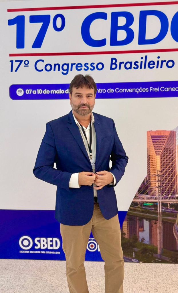 Presença constante no evento, o especialista compartilha sua vivência clínica e acompanha de perto as inovações que moldam o futuro da medicina da dor no Brasil.