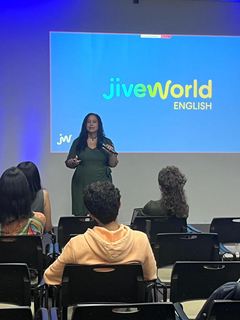 Na última terça (13), a universidade SENAI CIMATEC, por meio do Núcleo de Cooperação Internacional (NCI), promoveu o Workshop Jiveworld, que marcou o início da parceria com a plataforma Jiveworld English — uma solução inovadora de treinamento auditivo no idioma que acaba de chegar ao Brasil. O evento aconteceu no Auditório 2 do CIMATEC 2 e contou com a participação de Carolina Moraes, vice-presidente de Desenvolvimento de Negócios da Jiveworld, como palestrante convidada. Em sua apresentação, Carolina compartilhou experiências profissionais e pessoais, além de reforçar a importância da proficiência auditiva em inglês para o desenvolvimento de carreiras globais.