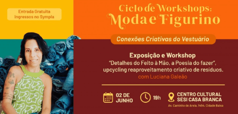 A primeira ação do Ciclo será a Exposição e Workshop “Detalhes do Feito à Mão, a Poesia do Fazer”, com Luciana Galeão, no dia 2 de junho (segunda-feira), às 19h, no Centro Cultural SESI Casa Branca (Caminho de Areia).