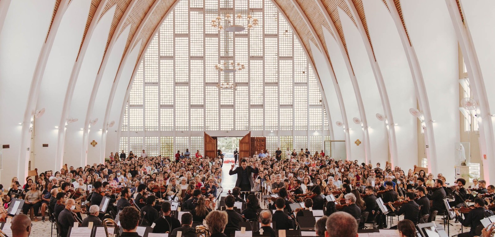 Esta é a segunda edição do projeto #Brucknerwaves no Santuário Nossa Senhora de Fátima. O local tem recebido muito bem os concertos da OSBA, se tornando uma espécie de “ritual domingueiro, um ponto de encontro entre a música, a arquitetura e a escuta generosa que só o clima das manhãs de domingo parecem permitir”, como afirma o maestro.