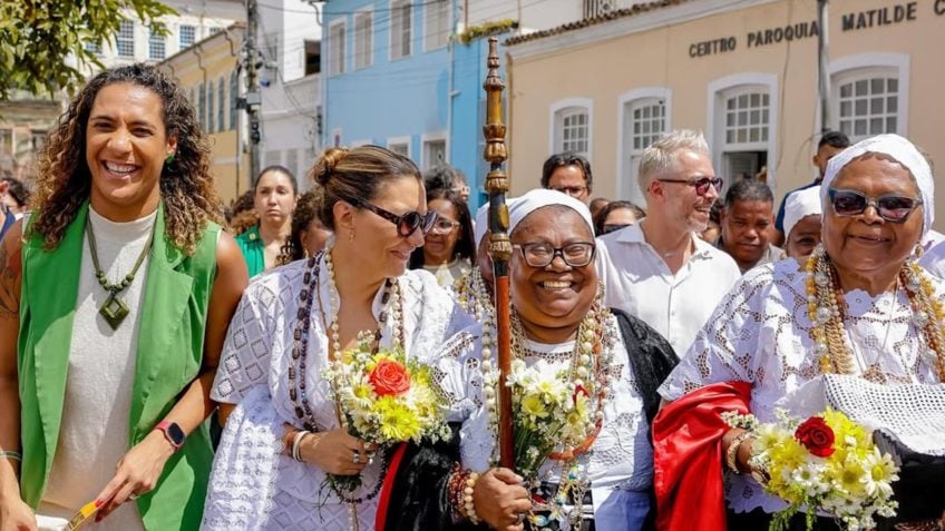 Na última sexta (15), a primeira-dama do Brasil, Janja da Silva, acompanhada das ministras Macaé Evaristo (Direitos Humanos), Margareth Menezes (Cultura) e Anielle Franco (Igualdade Racial), esteve em Cachoeira para acompanhar a tradicional Festa da Irmandade da Boa Morte. Na ocasião, também estiveram presentes secretários estaduais e Tatiana Velloso, a primeira-dama baiana.