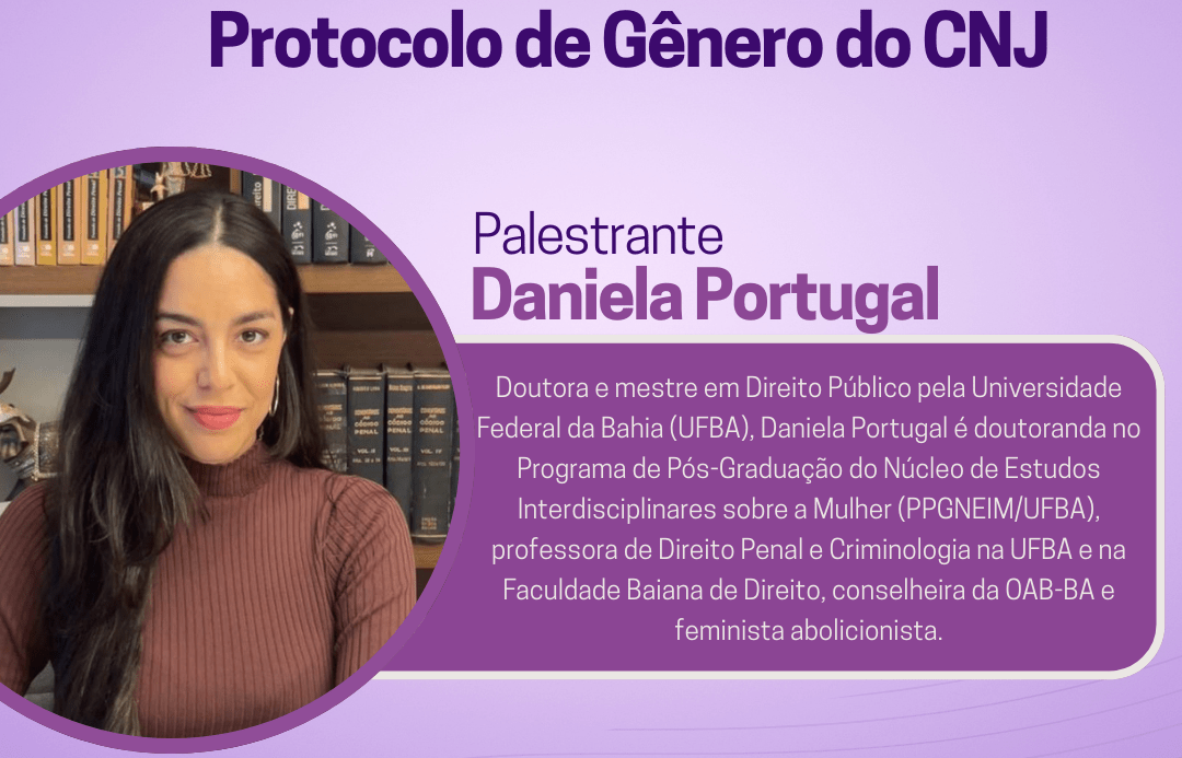 Doutora e mestre em Direito Público pela Universidade Federal da Bahia (UFBA), Daniela Portugal é doutoranda no Programa de Pós-Graduação do Núcleo de Estudos Interdisciplinares sobre a Mulher (PPGNEIM/UFBA), professora de Direito Penal e Criminologia na UFBA e na Faculdade Baiana de Direito, conselheira da OAB-BA e feminista abolicionista.