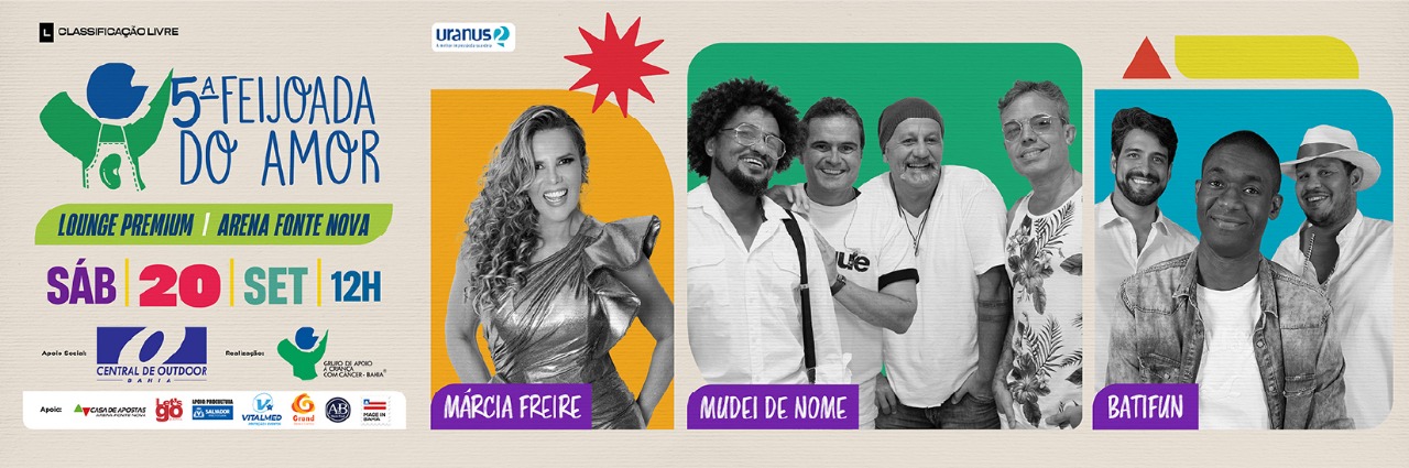 No caso da Feijoada do Amor, que começa às 12h no lounge premium da Arena Fonte Nova, haverá os shows de Márcia Freire e das bandas Mudei de Nome e Batifun. Indo ao evento, qualquer pessoa contribui de forma direta para o projeto “Acolhimento com Acessibilidade: Garantindo o Conforto dos Pacientes”, que prevê melhorias nos apartamentos que recebem crianças em tratamento e seus acompanhantes, incluindo a adaptação de oito unidades para pacientes com mobilidade reduzida.