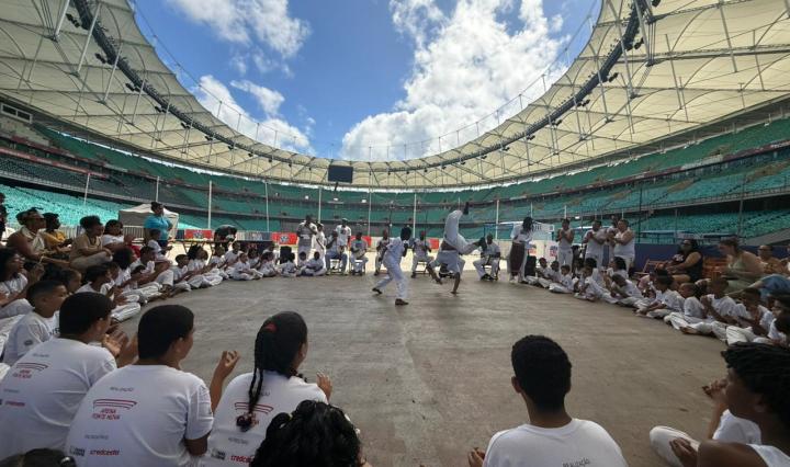 Arena Fonte Nova valoriza tradição no batizado de capoeira do CT de Campeões