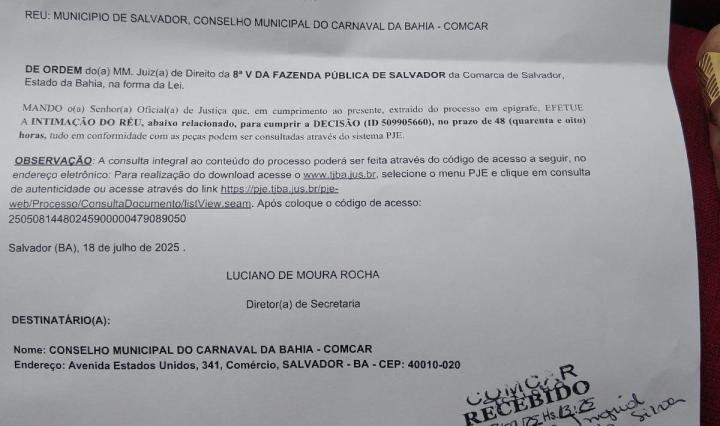 A Justiça da Bahia deu prazo de 48 horas para que a diretoria do Conselho Municipal do Carnaval de Salvador (Comcar) apresente documentos que comprovem a legitimidade dos conselheiros aptos a votar na eleição marcada para 22 de julho. A … Continuar lendo Justiça dá 48 horas para Comcar apresentar lista de conselheiros aptos a votar